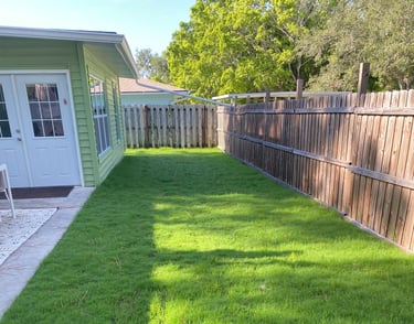 New sod installation: All sod is ordered fresh cut from the sod farm and picked up the day before or the day of installation. Our sod is then individually fitted by the piece to get as tight a fit as possible. All areas of concrete walkways and driveways are dug down at the edges at least 2-3” so the sod pieces meet evenly with the cement. Lot lines are met evenly with neighbor’s sod to have a professional look.
